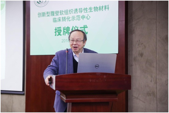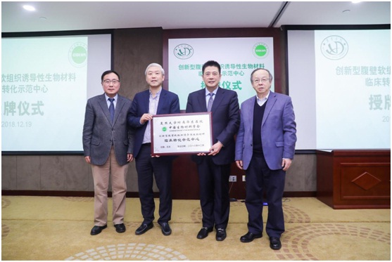 12月19日下午,中国生物材料学会向复旦大学附属华东医院授予“创新型腹壁软组织诱导性生物材料临床转化示范中心”的授牌仪式在上海举行。