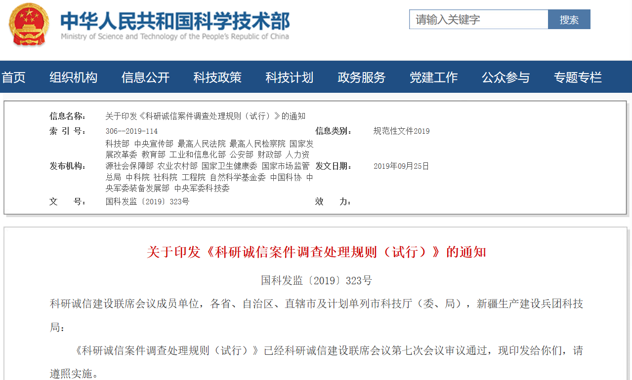 这份文件由科技部、中宣部、最高人民法院等 20 个部门联合发布,从职责分工、调查、处理、申诉复查、保障与监督等方面,明确了统一的调查处理规则。