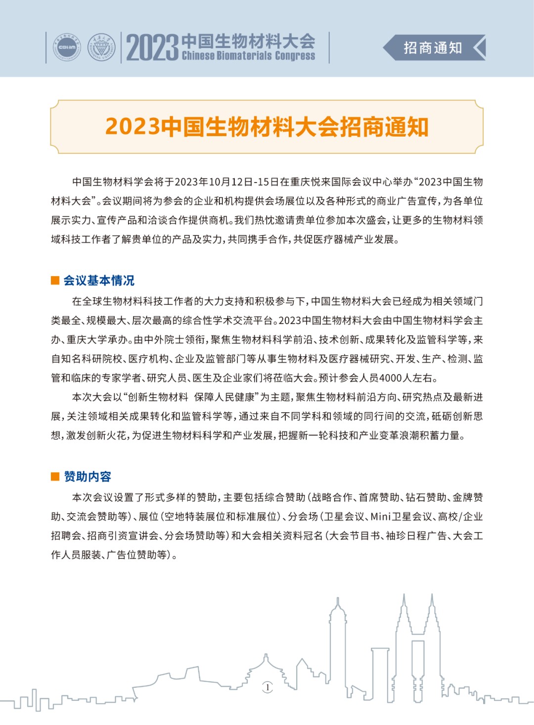 CSBM 2023 | 2023中国生物材料大会招商通知